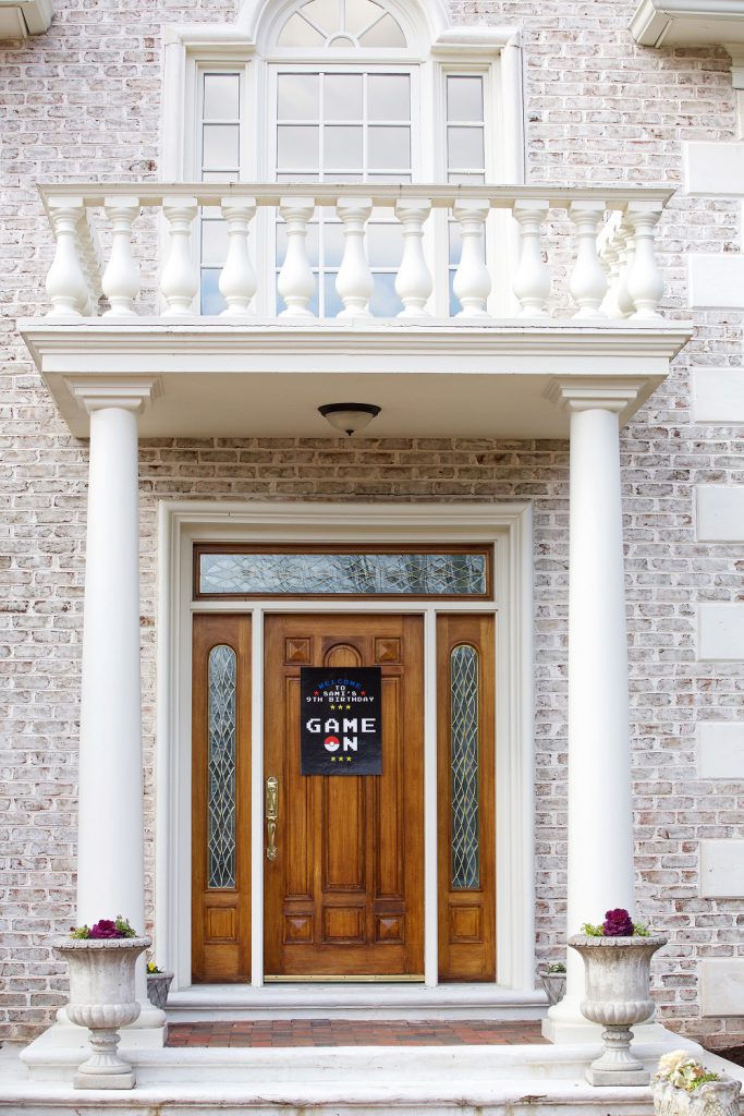 I find that the front door is a great spot for your first spot of party decor. I love hanging a sign or banner or wreath on the front door to set the tone for the birthday party! I worked with Fig. 2 Design to create all these fabulous graphics and signs.